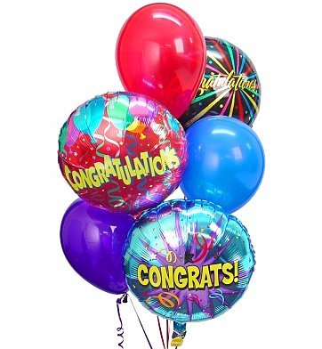 BALLOON BOUQUET3 Mylar congrats and 3 color balloons.