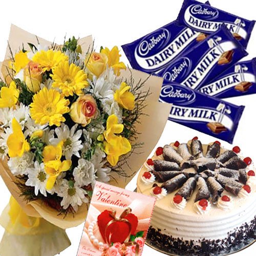 Celebrate your birthday todayBlack forest cake , mix flower bouquet & 5 cadbury 65 g each