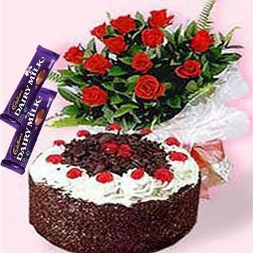 Say I love you!12 Red Roses With Cake & 150 grm candbury Choco.