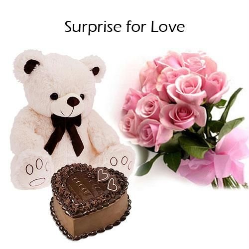 Soft Teddy N Pink Rose N Heart Shape CakeFlower Soft Teddy N Pink Rose N Heart Shape Cake. 24 inches teddy . 12 pink roses. teddy design may vary