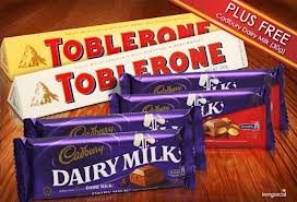 CHCOLATE HAMPERSweet: Toblerone 200g (Milk+White)+ Cadbury 65 g(4 pcs)