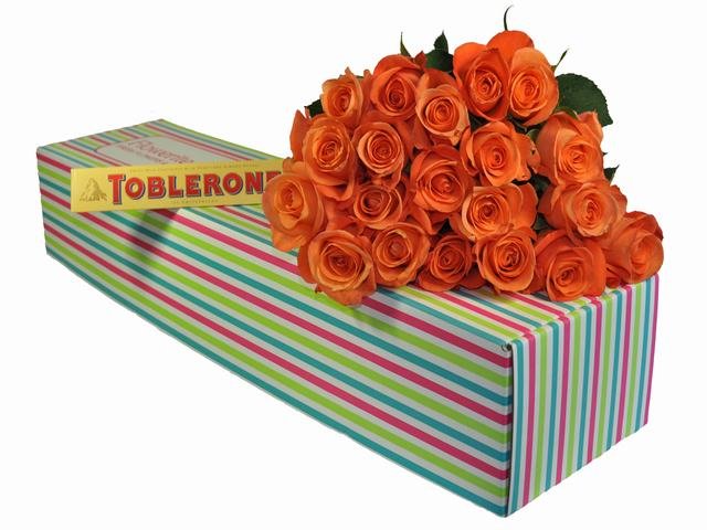 24 Orange Roses in a Box with Chocolates24 Orange Roses in a Box with 400 g toblerone Chocolates