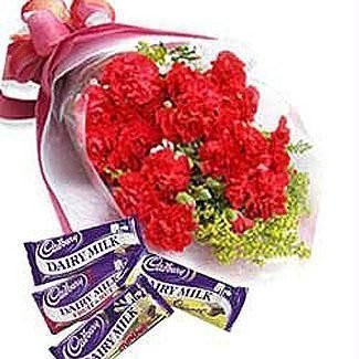 Carnations Bouquet With Cadbury Chocolates10 Carnations Bouquet With 5* 165 Cadbury Chocolates