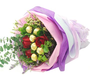 Ferrero Rocher Hand BouquetFerrero Rocher Hand Bouquet . 6 Stalks Red Roses + 9 pcs Ferrero Rocher .
