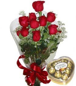 Love you eternallyDescription: Ferrero heart shape chocolate with 12 red rose bouquet to show your love one how much do you care for her. Your gift will come with a greeting card.