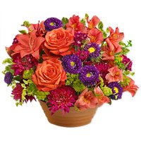 RushmoreA monumental creation of extreme extravagance forms this gorgeous arrangement for your loved one comprising of burnt orange roses with a medley of bright blooms in shades of deep purple, red and chartreuse.A monumental creation of extreme extravagance forms this gorgeous arrangement for your loved one comprising of burnt orange roses with a medley of bright blooms in shades of deep purple, red and chartreuse.