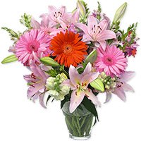 Perfect SmileA unique, exotic blend of pink lilies, gerberas, and snapdragons, placed in a pretty vase, makes a truly extravagant addition to their day.A unique, exotic blend of pink lilies, gerberas, and snapdragons, placed in a pretty vase, makes a truly extravagant addition to their day.
