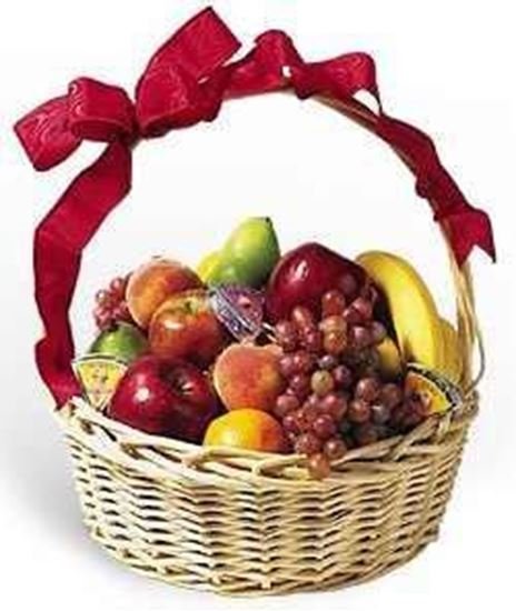 6 items fruits basketFilled to the brim with domestic and exotic fruits, our large, natural woven basket contains an assortment of the freshest seasonal and regional fruits. Fruit choices may include mangos, pears, apples,, bananas, oranges, and pineapple. Festively decorated with a bright bow and wrapped in colored cellophane, our basket is a great treat for anyone on your list. Exact basket and fruit selection may vary by season and delivery location.(6 items).N0TE: FRUITS ITEMS MAY VARY ..DEPEND ON TH AVAILABILITY