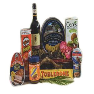XMAS GIFT BASKETHereford Cooked Ham 16oz French Cellars Shiraz 750ml Libby’s Vienna Sausage 4.6oz DAK Pate De Foie 90g Ovomaltine Crunchy Cream 380g Pringles US Original 5.68oz Royal Dansk Butter Cookies Original 454g Toblerone Milk 200g Ceres Cranberry Fruit Juice 1L