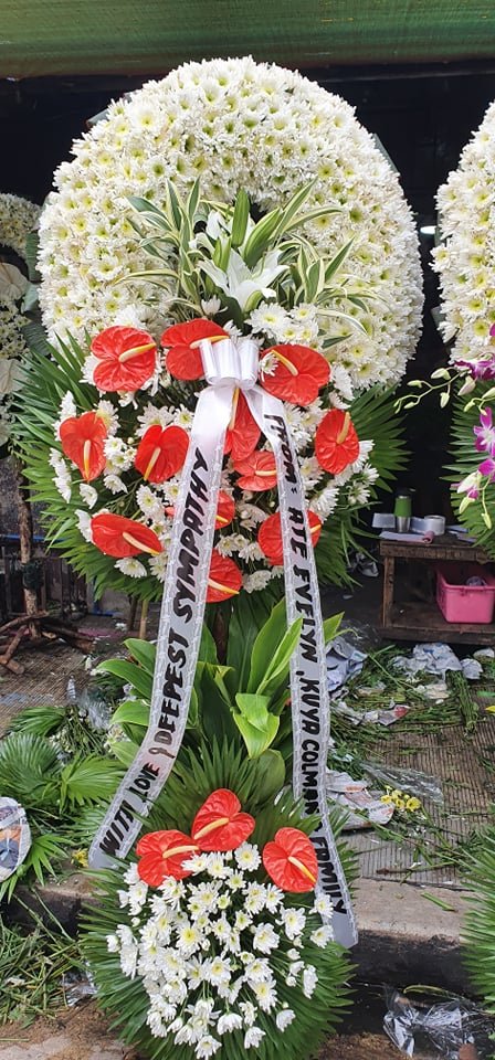 White & red Sympathy Standing SprayNo Product Detail Available