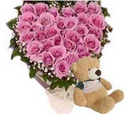 Lonely Without You...Let your sweetheart/ spouse know how much you miss being together. (heart shape 4 dozen pink roses and 8 " teddy bear).