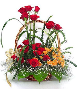 People Who Love You24 red roses and 6 yellew carnation(or champagne roses) with gypsophila and green leaves, beautiful flowers basket arrangements. - Order two days ahead.