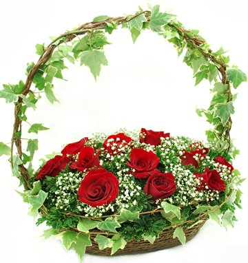 Flower Basket 1524 Stalks Red Roses With Ivy Leaf.