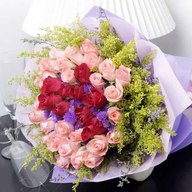 THE WAY YOU LOOK TONIGHT36 Pink/red Roses with Yellow Phoenix