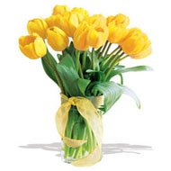 When we will meat againThis cheerful arrangement of 10 pieces yellow tulip with gorgeous glass vase. Note: Color may vary.